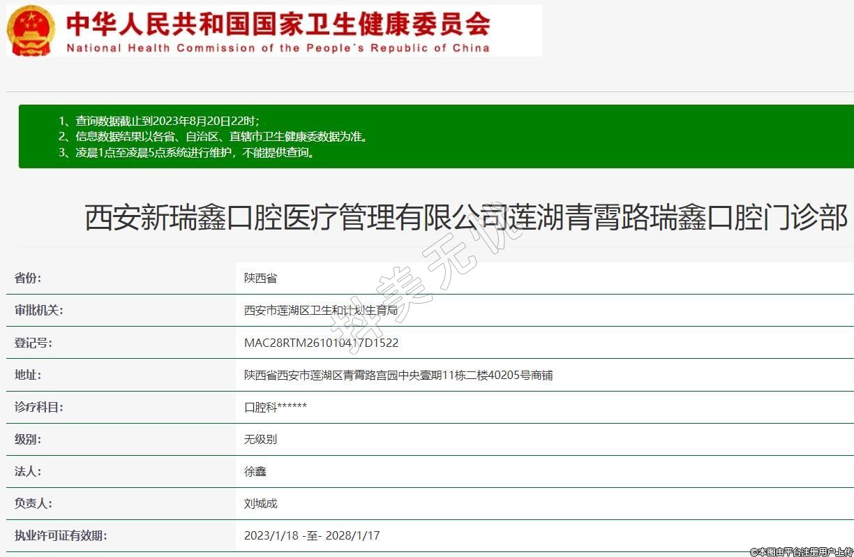 西安新瑞鑫口腔醫(yī)療管理有限公司蓮湖青霄路瑞鑫口腔門診部