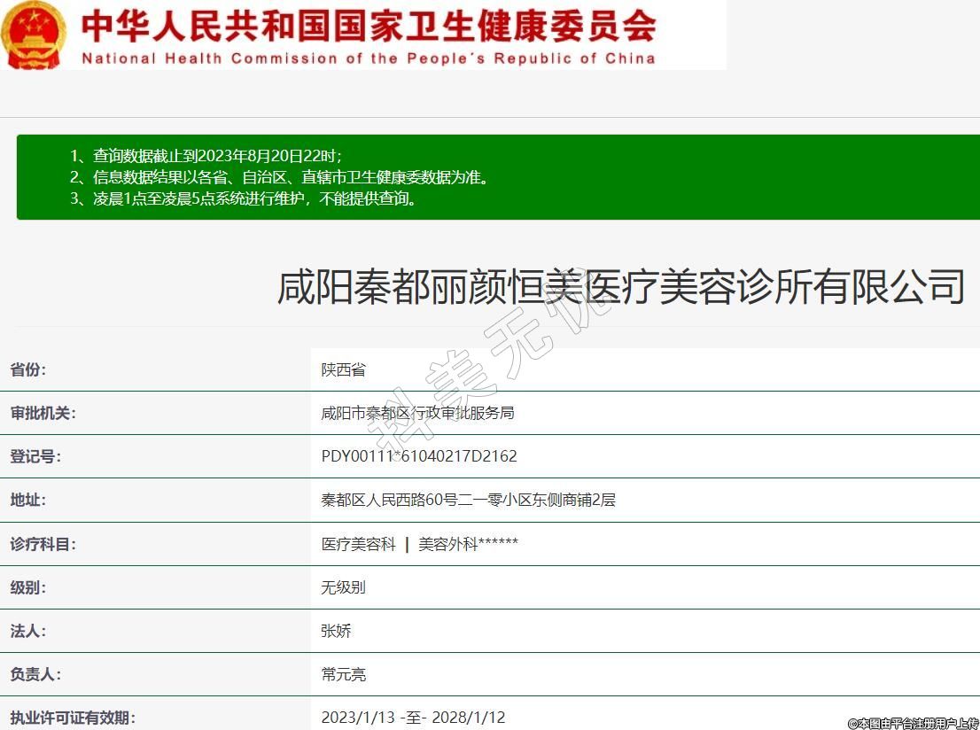 咸陽秦都麗顏恒美醫(yī)療美容診所有限公司