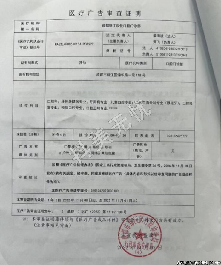 機(jī)構(gòu)名稱:成都錦江歡悅口腔門(mén)診部
