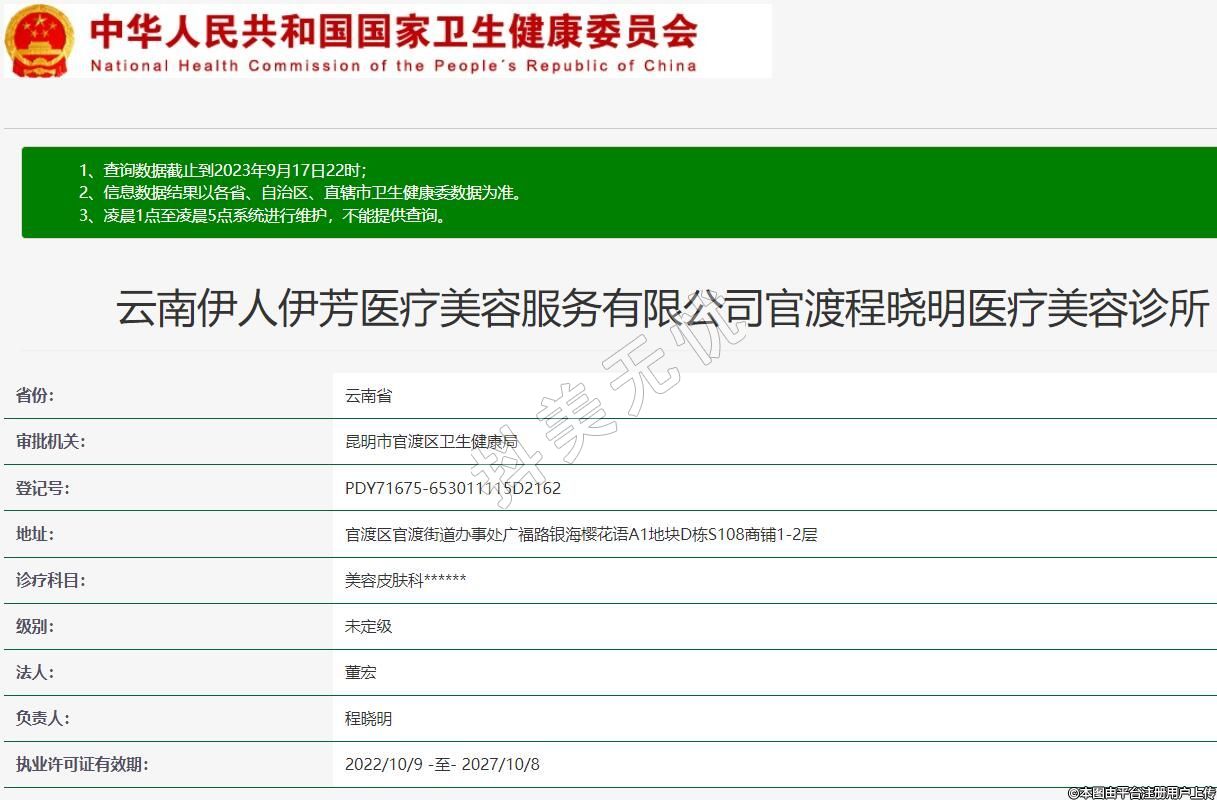 云南伊人伊芳醫(yī)療美容服務(wù)有限公司官渡程曉明醫(yī)療美容診所
