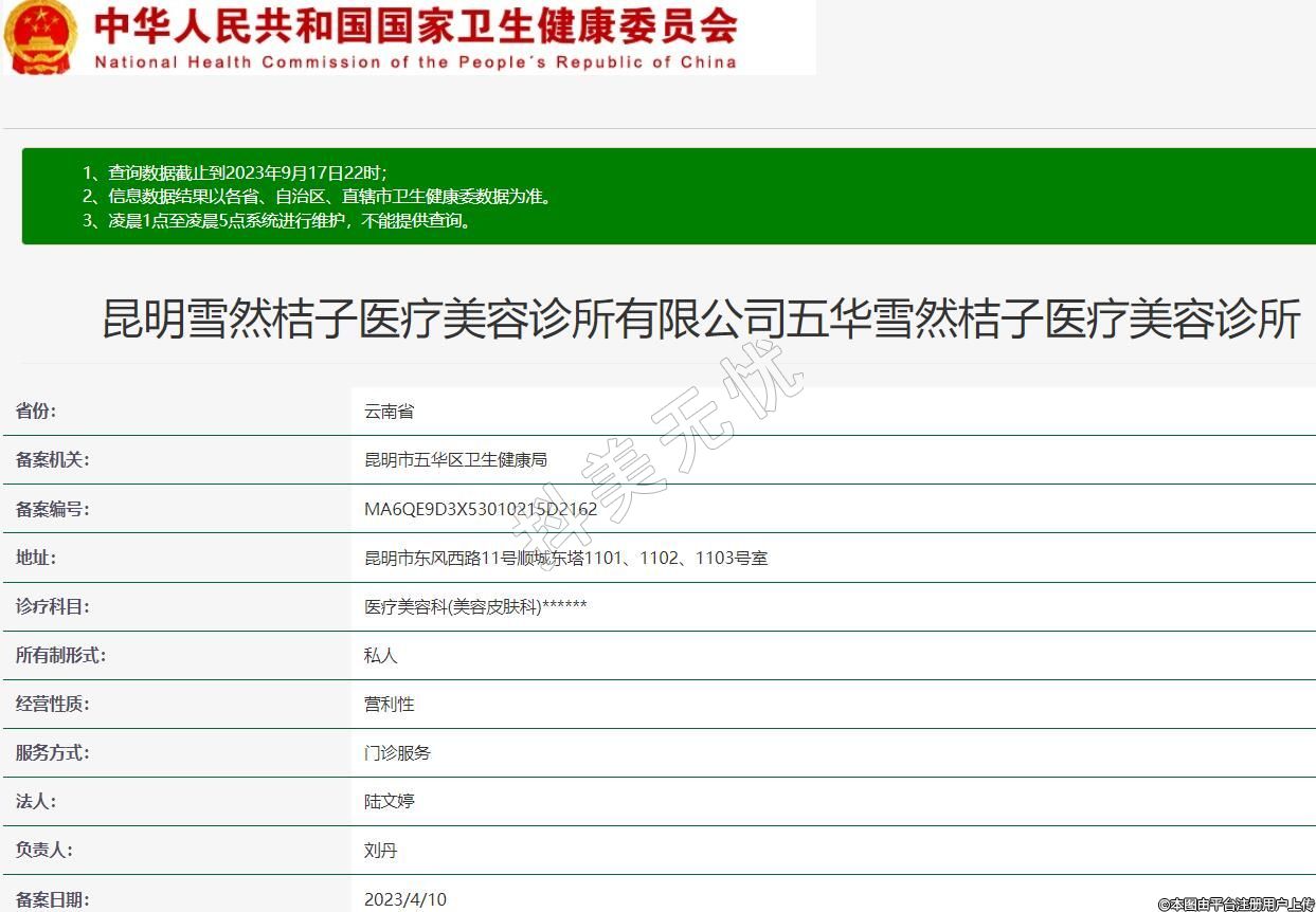 昆明雪然桔子醫(yī)療美容診所有限公司五華雪然桔子醫(yī)療美容診所