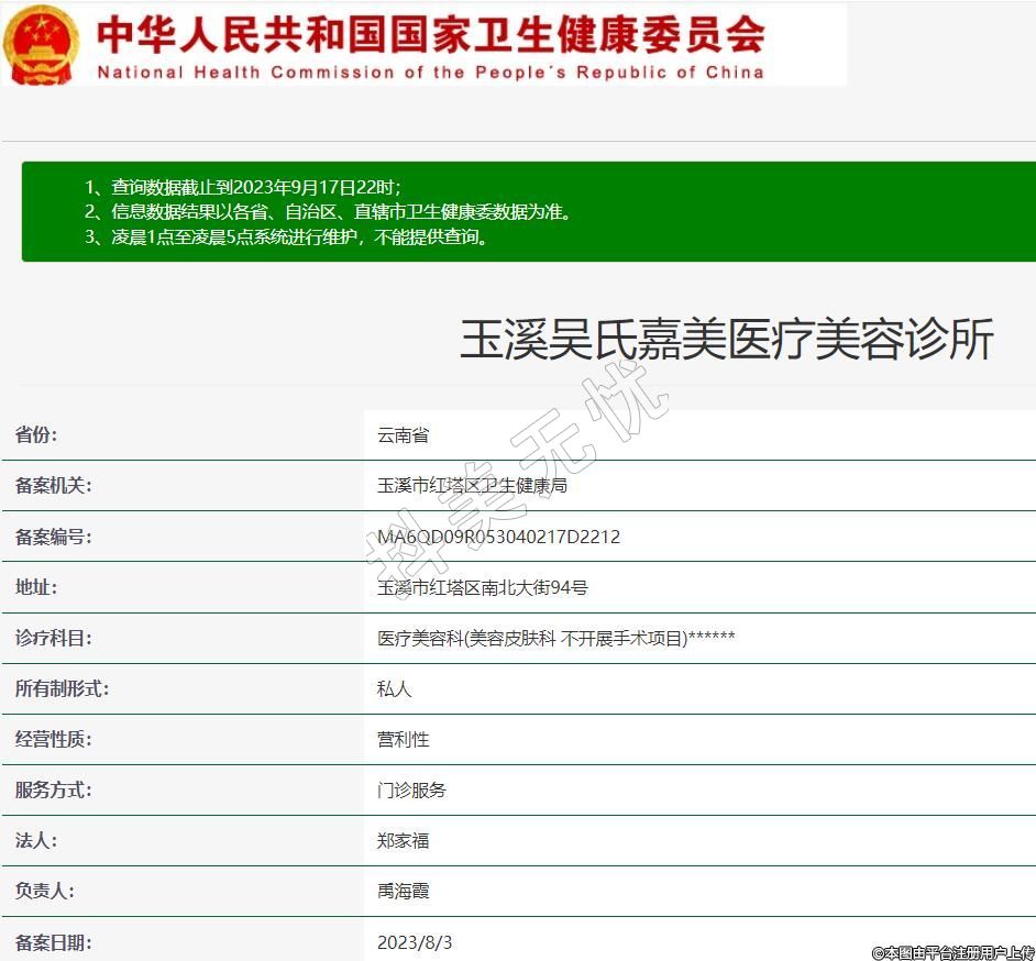 玉溪吳氏嘉美醫(yī)療美容診所,診療科目:醫(yī)療美容科(美容皮膚科 不開展手術(shù)項目)******