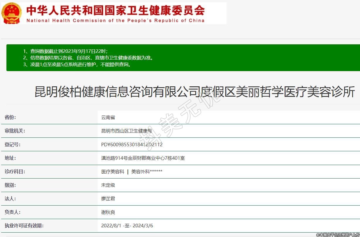 昆明俊柏健康信息咨詢有限公司度假區(qū)美麗哲學醫(yī)療美容診所