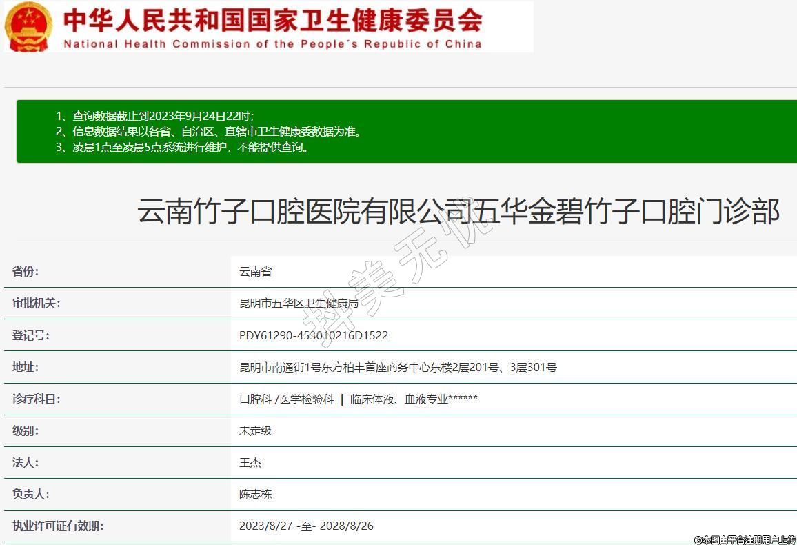 云南竹子口腔醫(yī)院有限公司五華金碧竹子口腔門診部