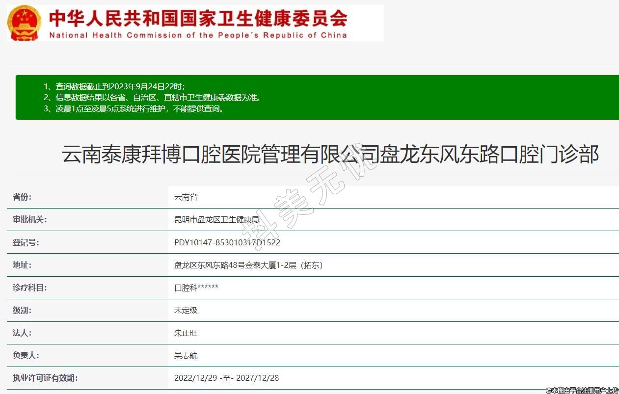 云南泰康拜博口腔醫(yī)院管理有限公司盤龍東風(fēng)東路口腔門診部