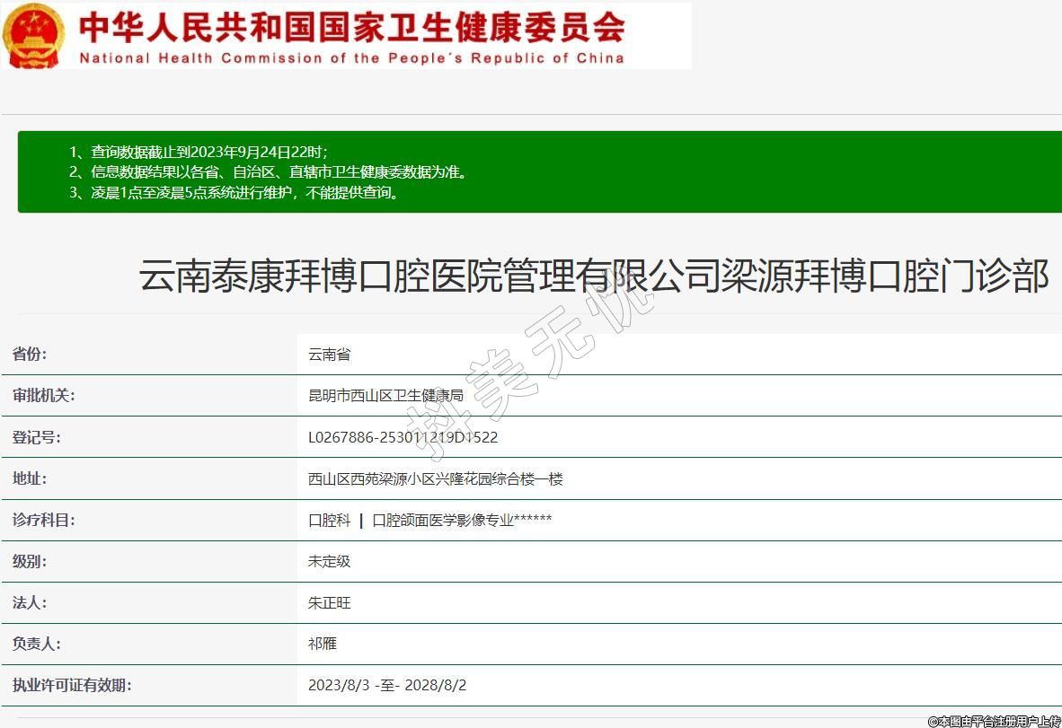 云南泰康拜博口腔醫(yī)院管理有限公司梁源拜博口腔門診部