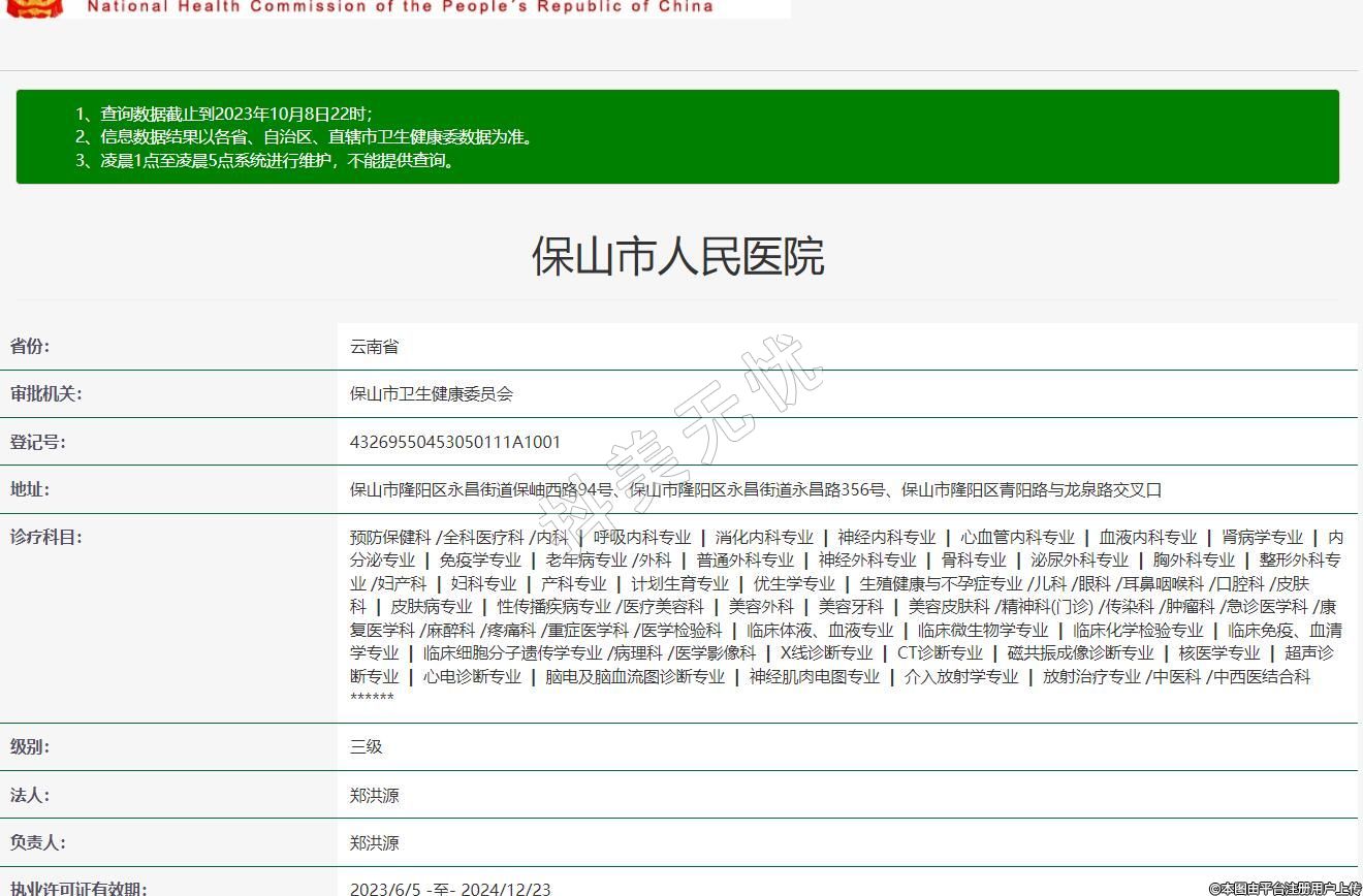 審批機關(guān):保山市衛(wèi)生健康委員會