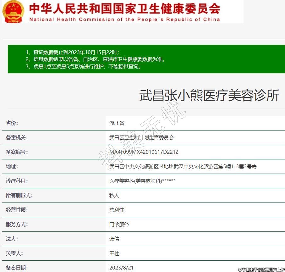 武漢張小熊醫(yī)療美容診所于2021年成立,隸屬張小熊輕醫(yī)美連鎖,坐落于武漢市武昌區(qū)中央文化旅游區(qū)J4地塊武漢中央文化旅游區(qū)第5幢1-3層3號房。診所開展皮膚疾病的診斷與治療、激光治療、中胚層治療、微整形等醫(yī)療項(xiàng)目。診所采用預(yù)約制,術(shù)前、術(shù)中、術(shù)后全流程專業(yè)化服務(wù)。醫(yī)生親診+高端設(shè)備+甄選材料+專業(yè)治療,真正實(shí)現(xiàn)“回歸醫(yī)療本質(zhì)”。