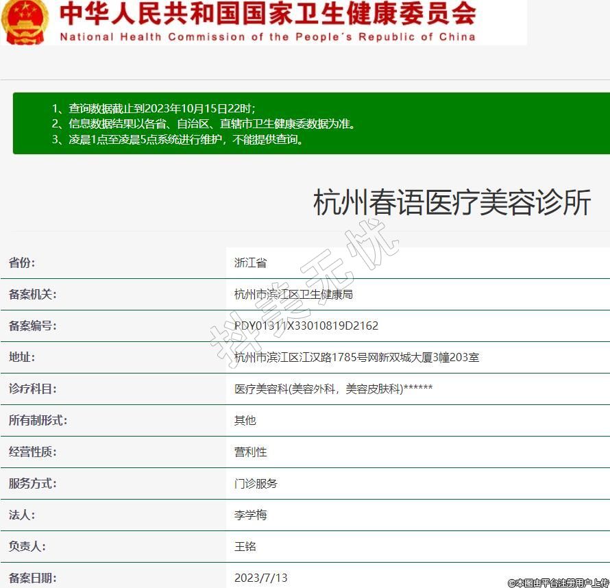 備案機關:杭州市濱江區(qū)衛(wèi)生健康局