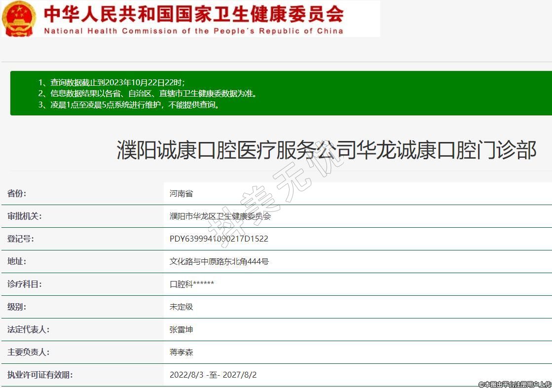 濮陽(yáng)誠(chéng)康口腔醫(yī)療服務(wù)公司華龍誠(chéng)康口腔門診部