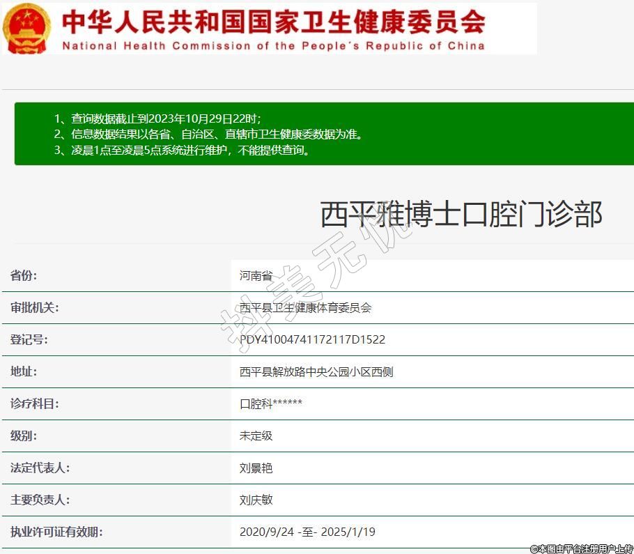 審批機關:西平縣衛(wèi)生健康體育委員會