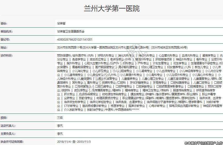 地址:蘭州市東崗西路11號(蘭州大學第一醫(yī)院西站院區(qū)蘭州市七里河區(qū)龔北路84號)(蘭州市城關區(qū)東崗西路249號)