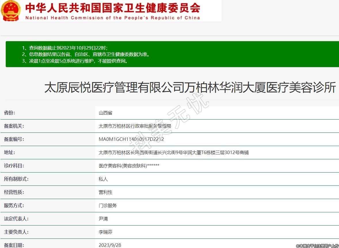 太原辰悅醫(yī)療管理有限公司萬柏林華潤大廈醫(yī)療美容診所,診療科目:醫(yī)療美容科(美容皮膚科)******