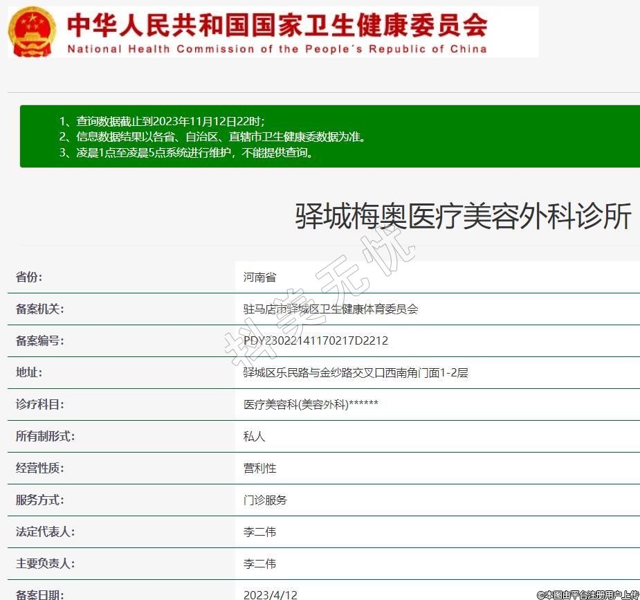 備案機關:駐馬店市驛城區(qū)衛(wèi)生健康體育委員會