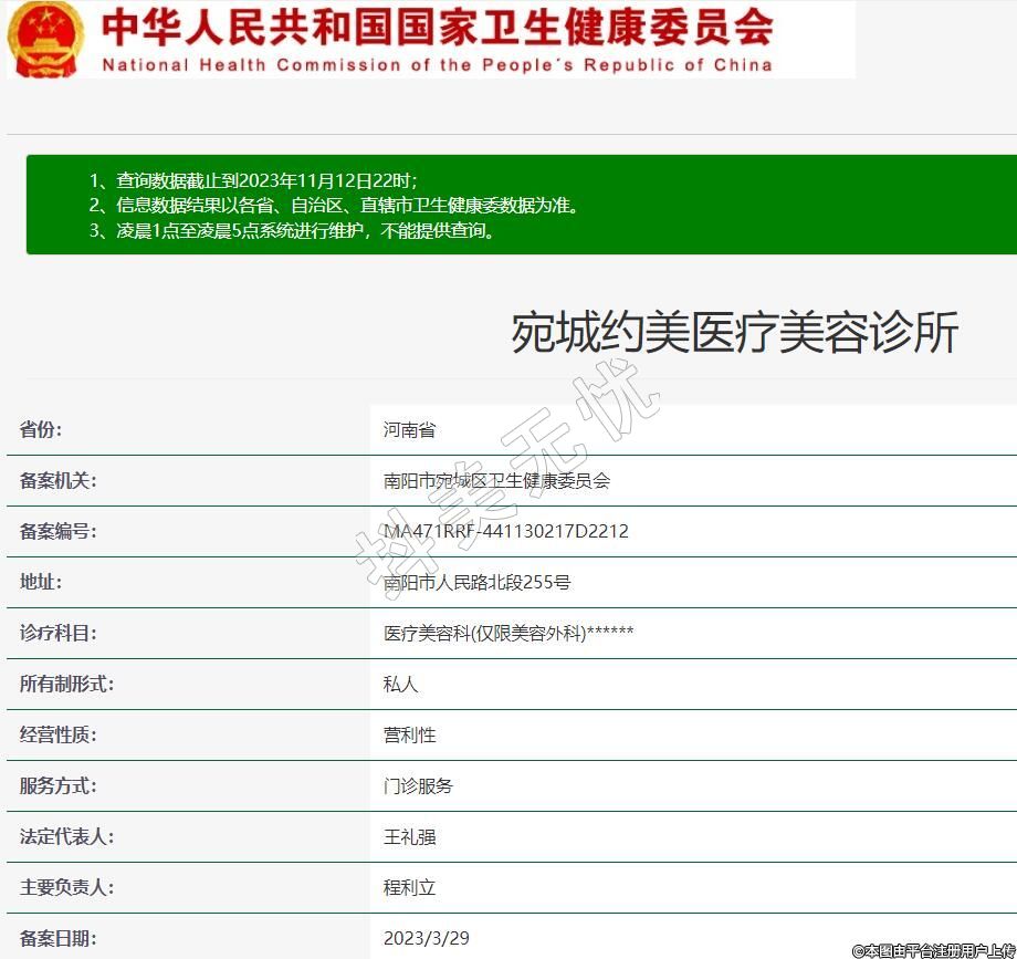 備案機關:南陽市宛城區(qū)衛(wèi)生健康委員會