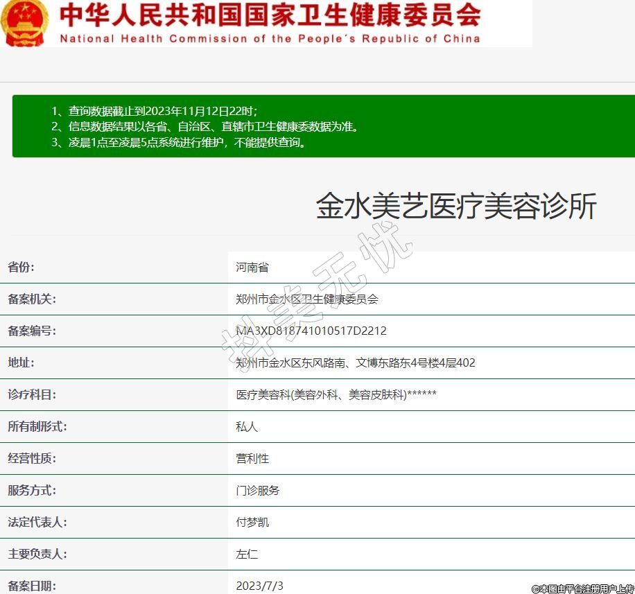 備案機關:鄭州市金水區(qū)衛(wèi)生健康委員會