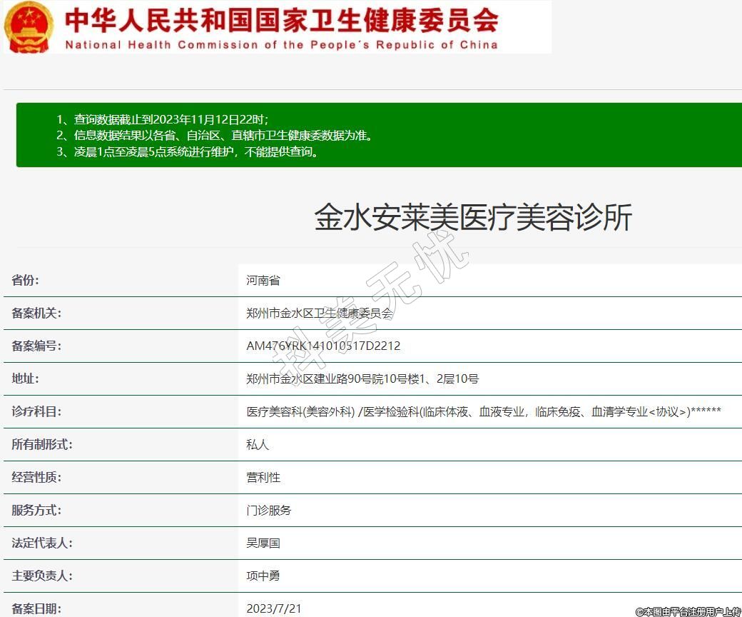 備案機關:鄭州市金水區(qū)衛(wèi)生健康委員會