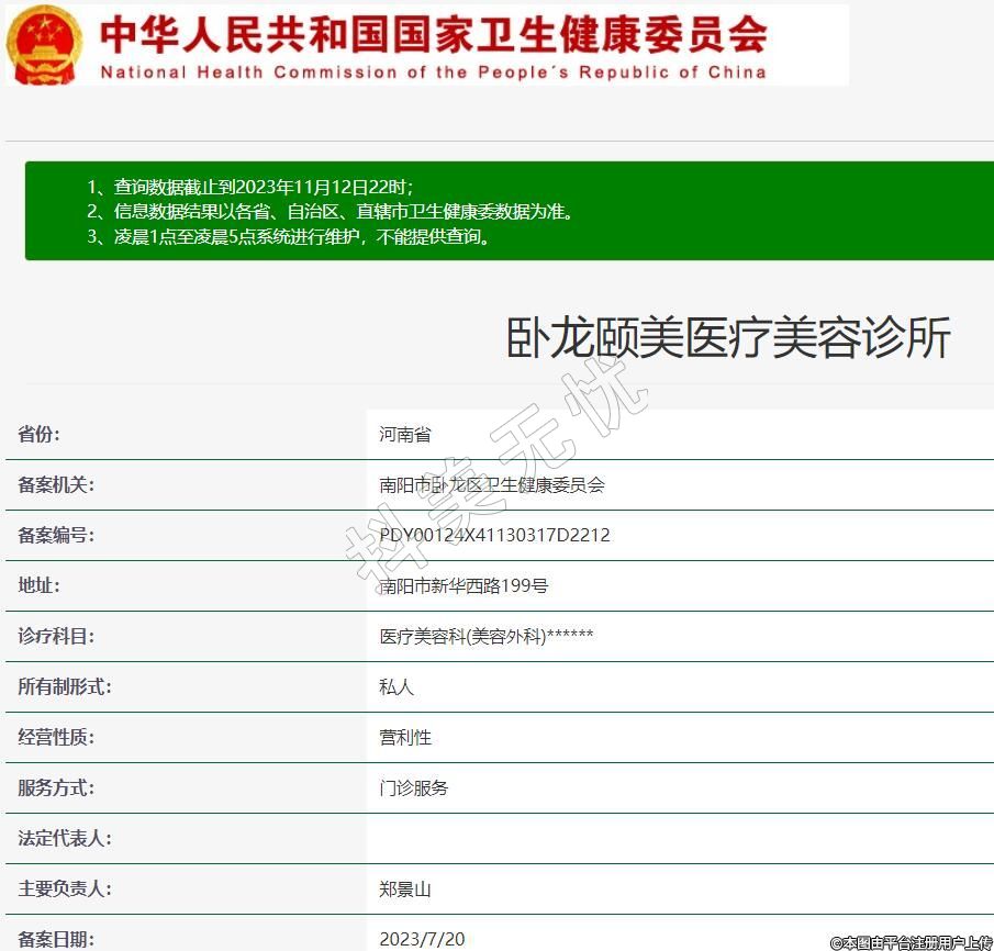 備案機(jī)關(guān):南陽(yáng)市臥龍區(qū)衛(wèi)生健康委員會(huì)