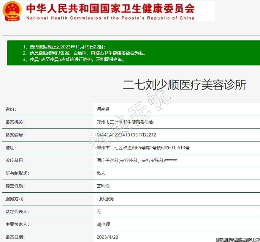 備案機關(guān):鄭州市二七區(qū)衛(wèi)生健康委員會