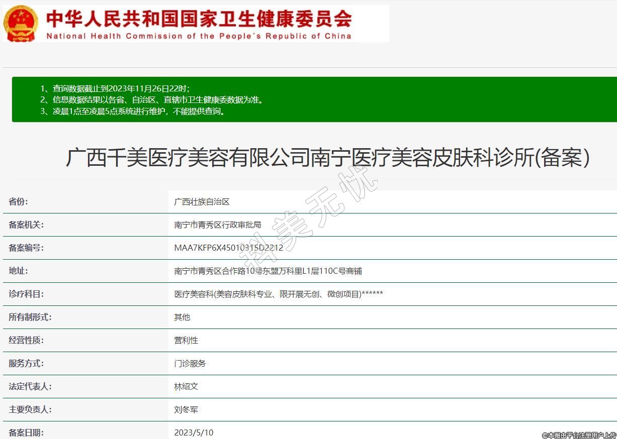 廣西千美醫(yī)療美容有限公司南寧醫(yī)療美容皮膚科診所(備案)
