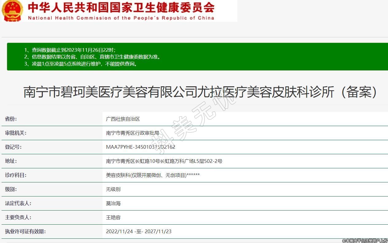南寧市碧珂美醫(yī)療美容有限公司尤拉醫(yī)療美容皮膚科診所(備案)