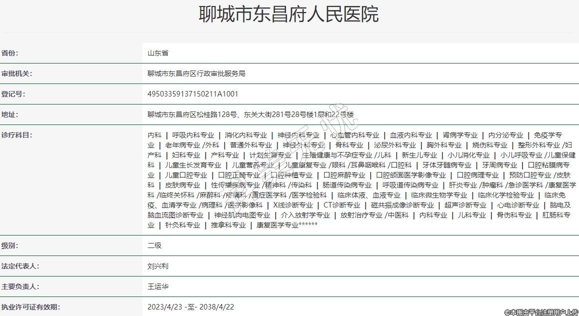 執(zhí)業(yè)許可證有效期:2023/4/23 -至- 2038/4/22