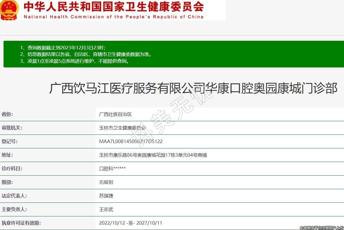 廣西飲馬江醫(yī)療服務(wù)有限公司華康口腔奧園康城門診部