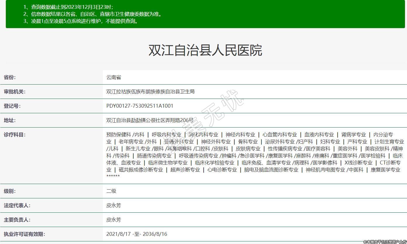 審批機(jī)關(guān):雙江拉祜族佤族布朗族傣族自治縣衛(wèi)生局