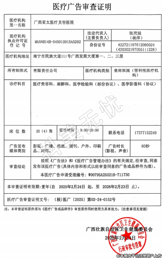 機構(gòu)名稱:廣西亞太醫(yī)療美容醫(yī)院