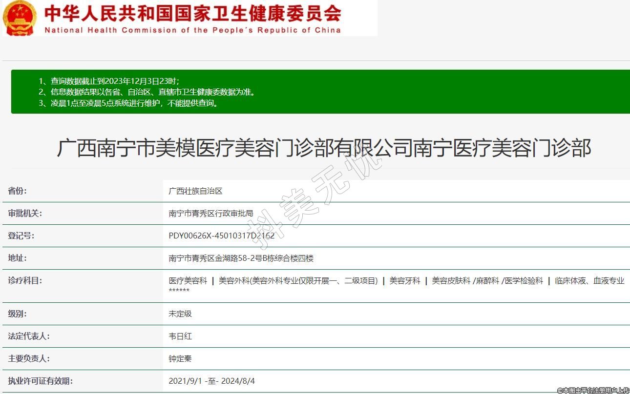 廣西南寧市美模醫(yī)療美容門診部有限公司南寧醫(yī)療美容門診部