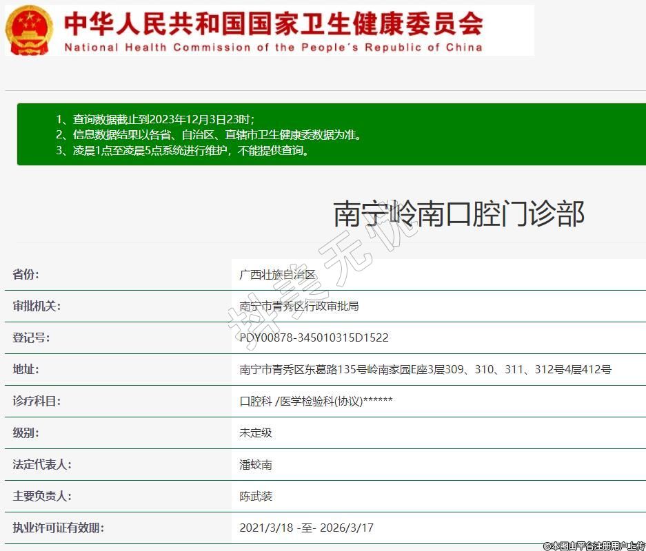南寧嶺南口腔門診部:廣西種植牙知名品牌,正畸品牌嶺南牙科口腔診所醫(yī)院是純專業(yè)的口腔醫(yī)療機(jī)構(gòu),創(chuàng)始人兼核心管理者潘蛟南,廣西醫(yī)科大學(xué)醫(yī)學(xué)碩士、副主任醫(yī)師、種植牙及正畸??漆t(yī)師,曾在三甲醫(yī)院(南寧市人民醫(yī)院)口腔科工作十六年,1998年獲得副主任醫(yī)師資格,2001年辭去公職,2002年承包某醫(yī)院口腔科到2004年創(chuàng)立嶺南牙科品牌,推廣爛牙似金的爛牙不拔技術(shù),懸賞五萬治爛牙。