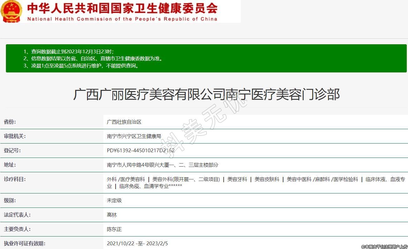 廣西廣麗醫(yī)療美容有限公司南寧醫(yī)療美容門(mén)診部
