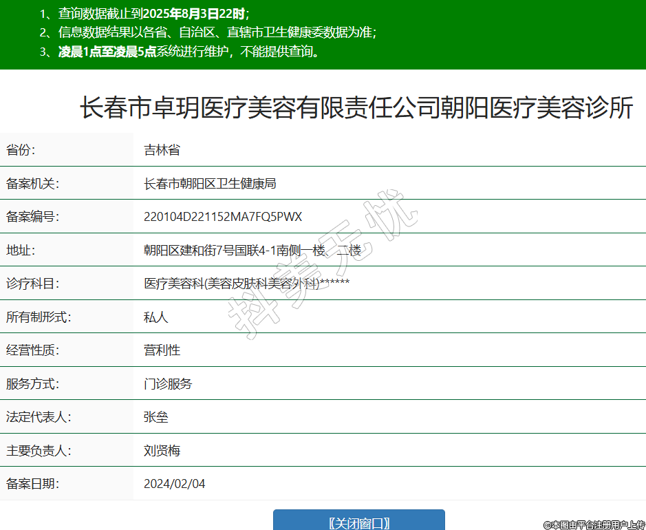 長(zhǎng)春市卓玥醫(yī)療美容有限責(zé)任公司朝陽(yáng)醫(yī)療美容診所