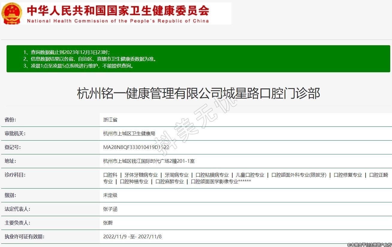 杭州銘一健康管理有限公司城星路口腔門診部