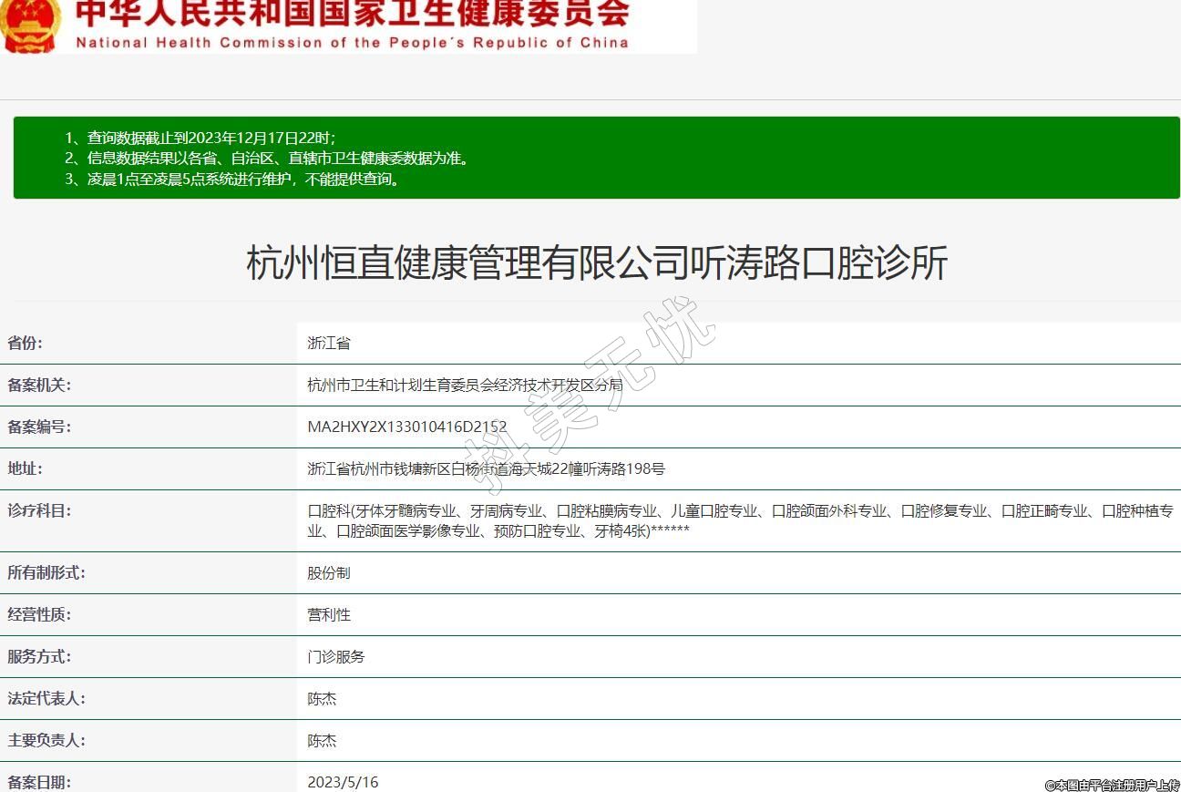 杭州恒直健康管理有限公司聽濤路口腔診所