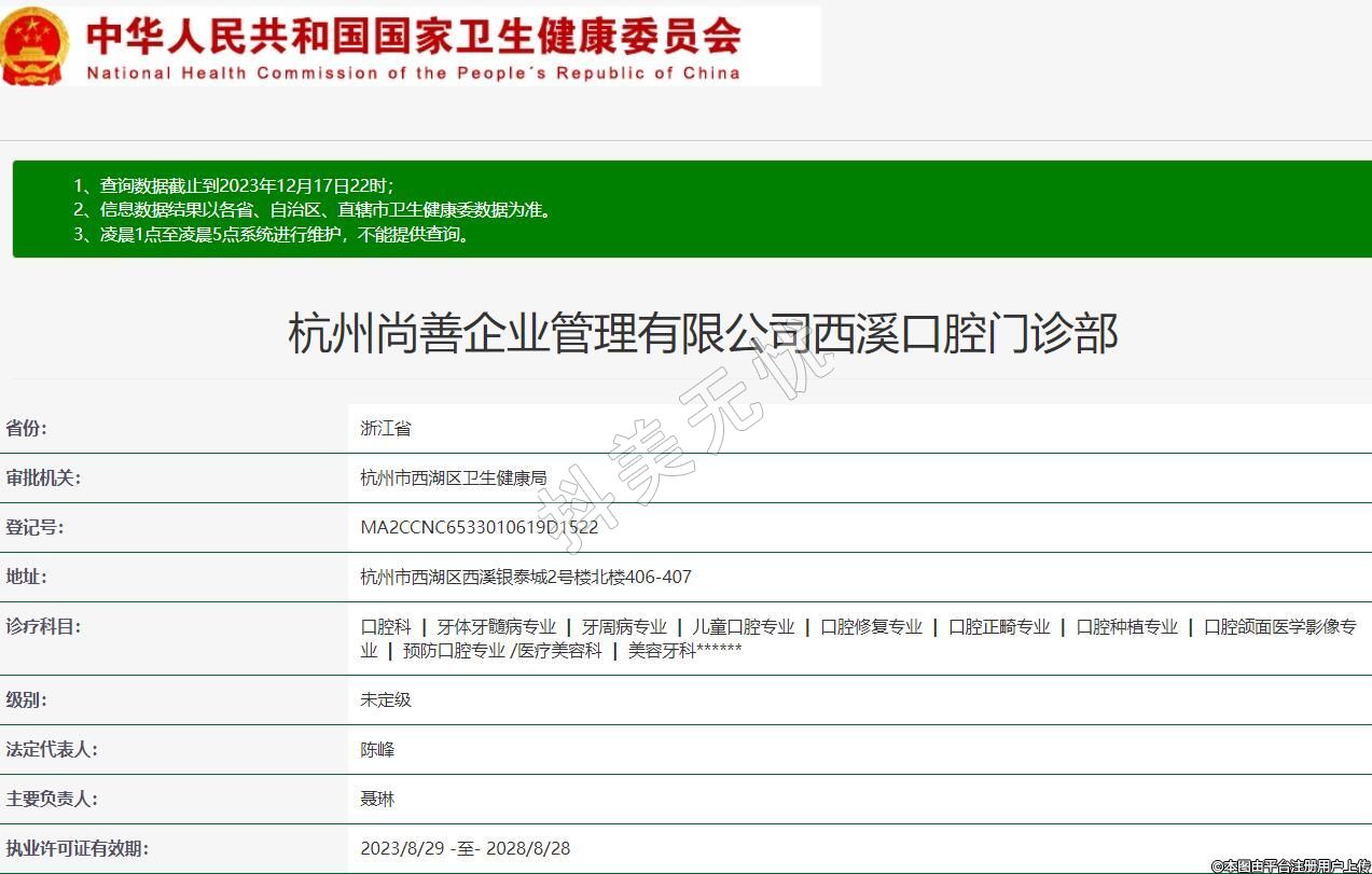 杭州尚善企業(yè)管理有限公司西溪口腔門診部
