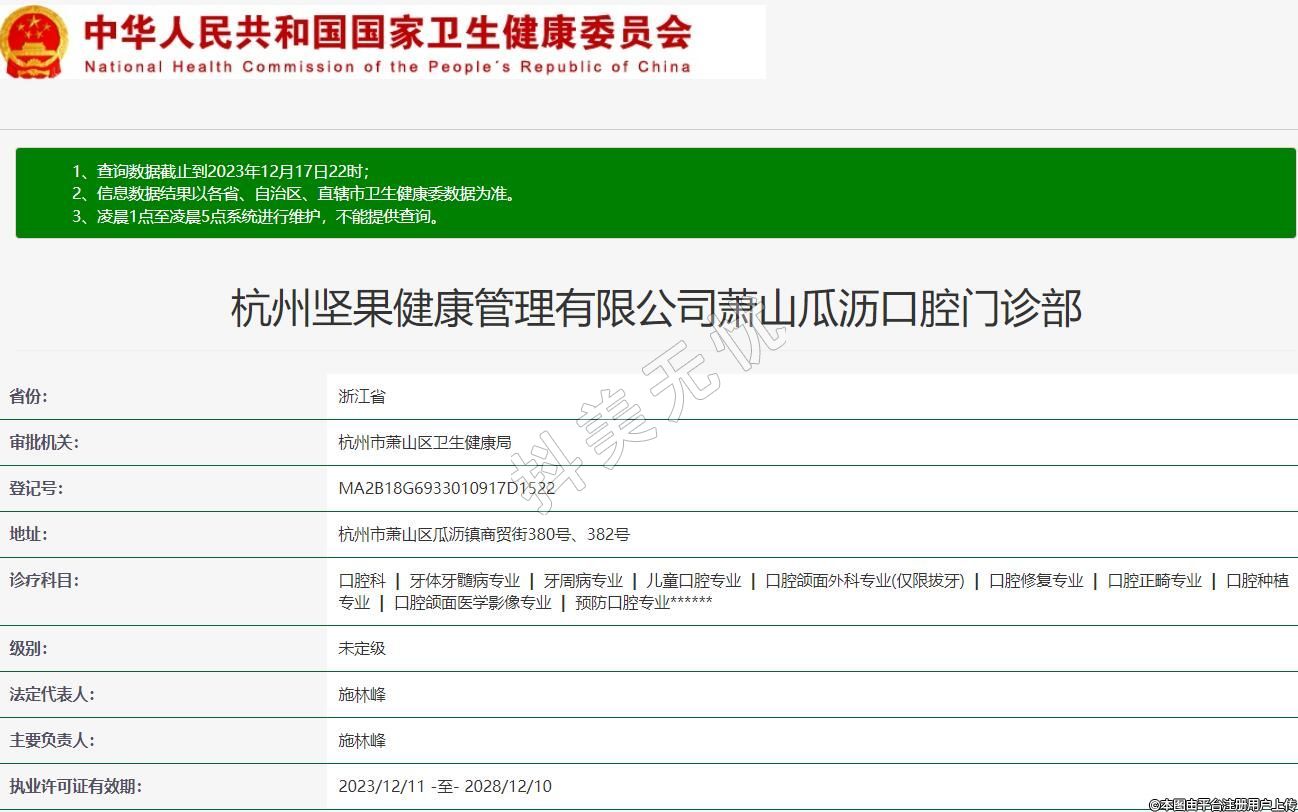 杭州堅(jiān)果健康管理有限公司蕭山瓜瀝口腔門診部
