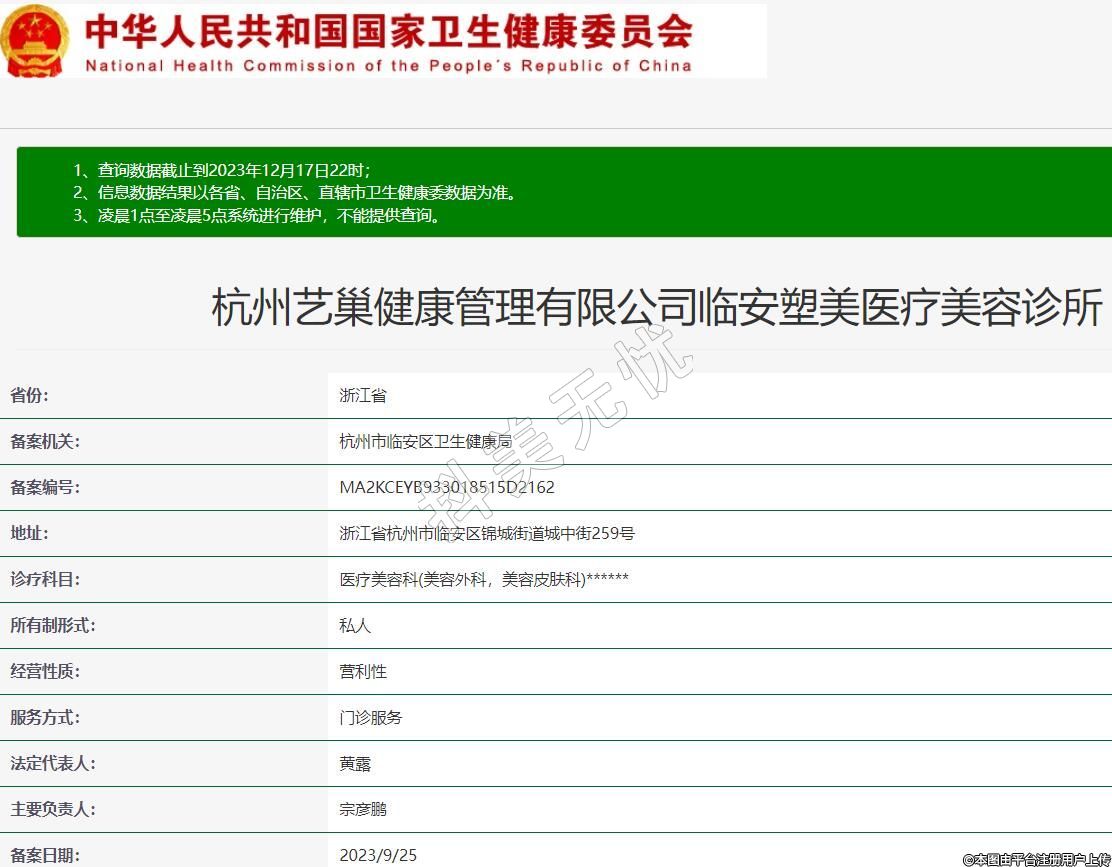 備案機關:杭州市臨安區(qū)衛(wèi)生健康局