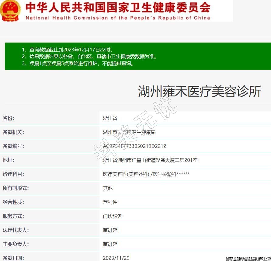 湖州雍禾醫(yī)療美容診所,診療科目:醫(yī)療美容科(美容外科) /醫(yī)學(xué)檢驗(yàn)科******