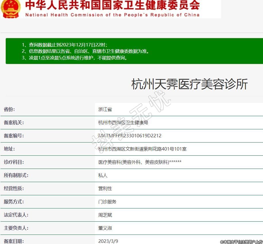 備案機關(guān):杭州市西湖區(qū)衛(wèi)生健康局