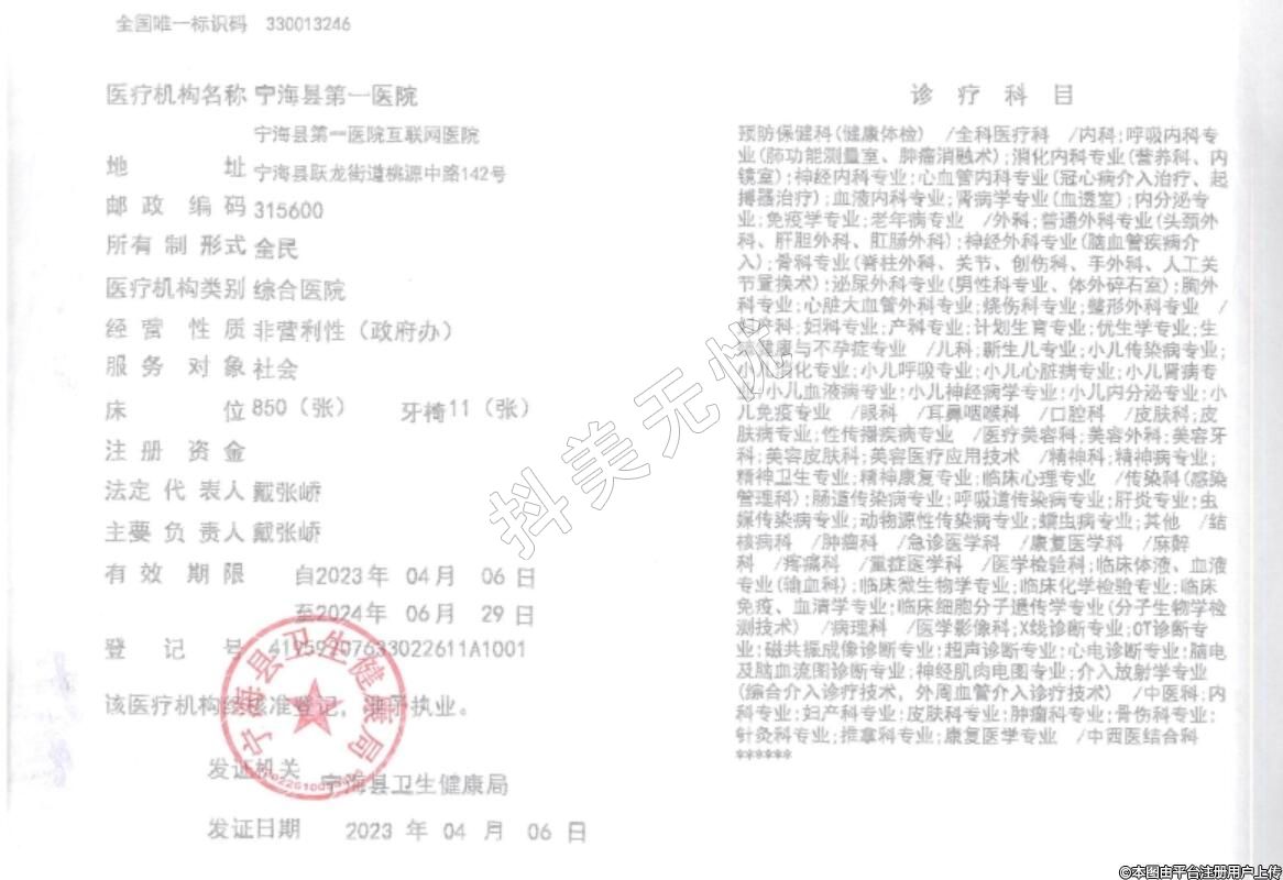 發(fā)證機關:寧??h衛(wèi)生健康局