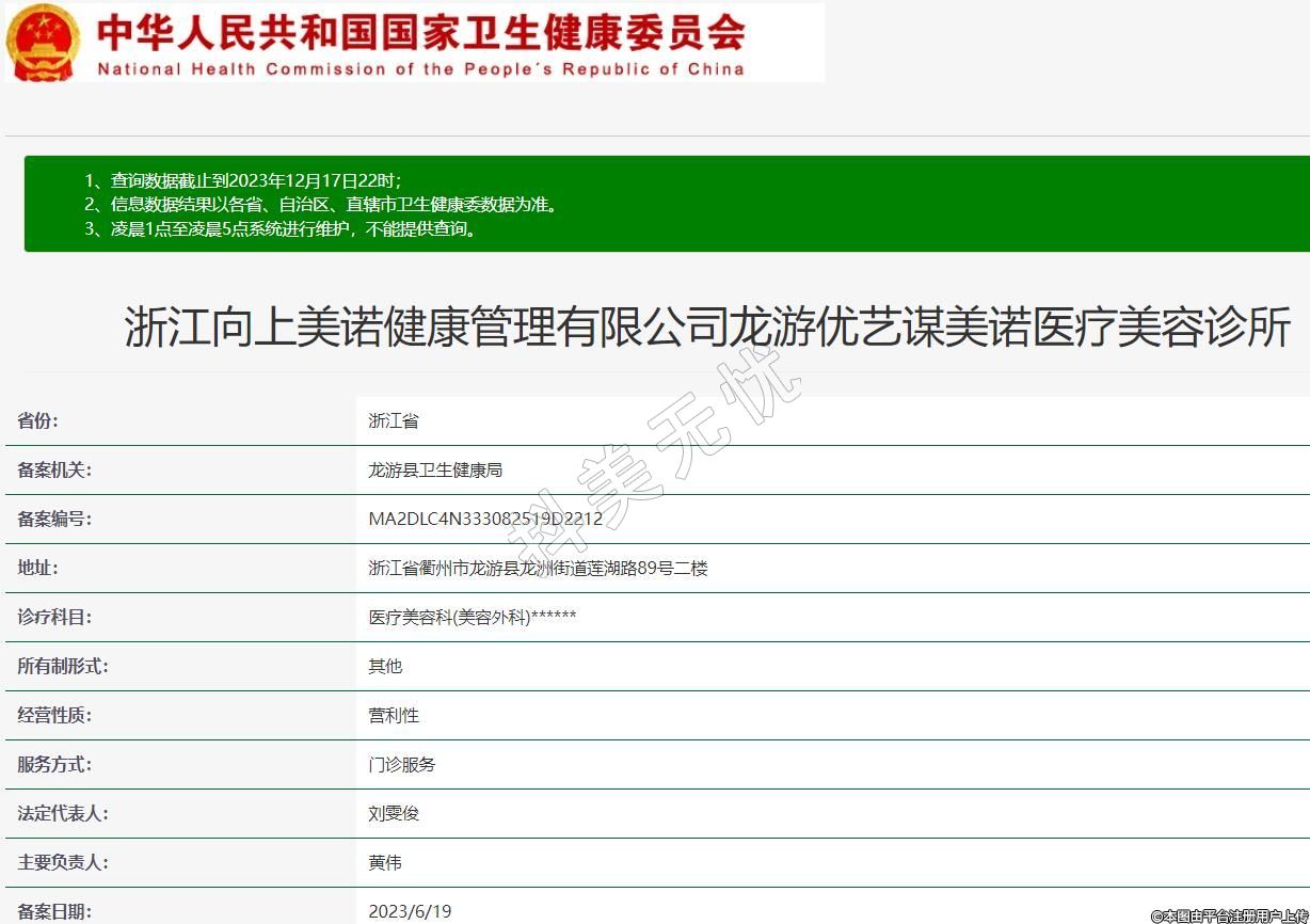 浙江向上美諾健康管理有限公司龍游優(yōu)藝謀美諾醫(yī)療美容診所