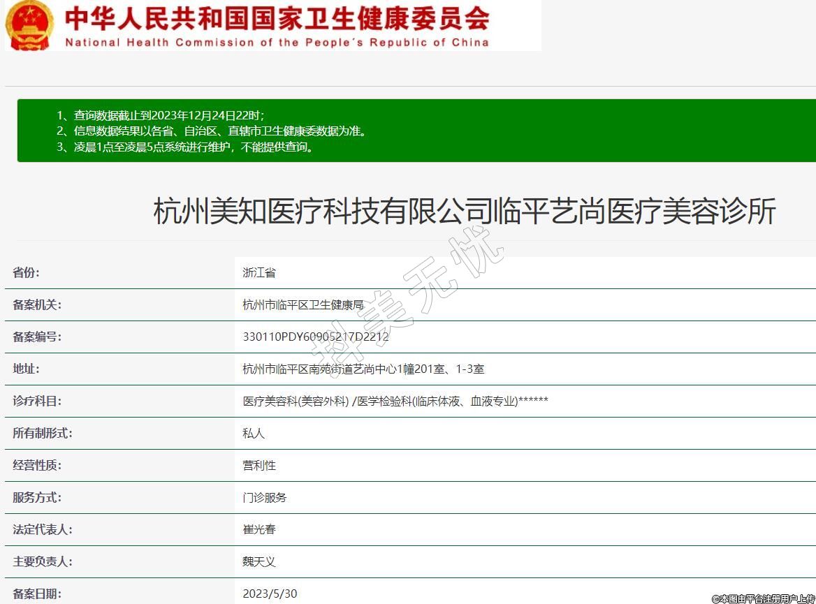 杭州美知醫(yī)療科技有限公司臨平藝尚醫(yī)療美容診所
