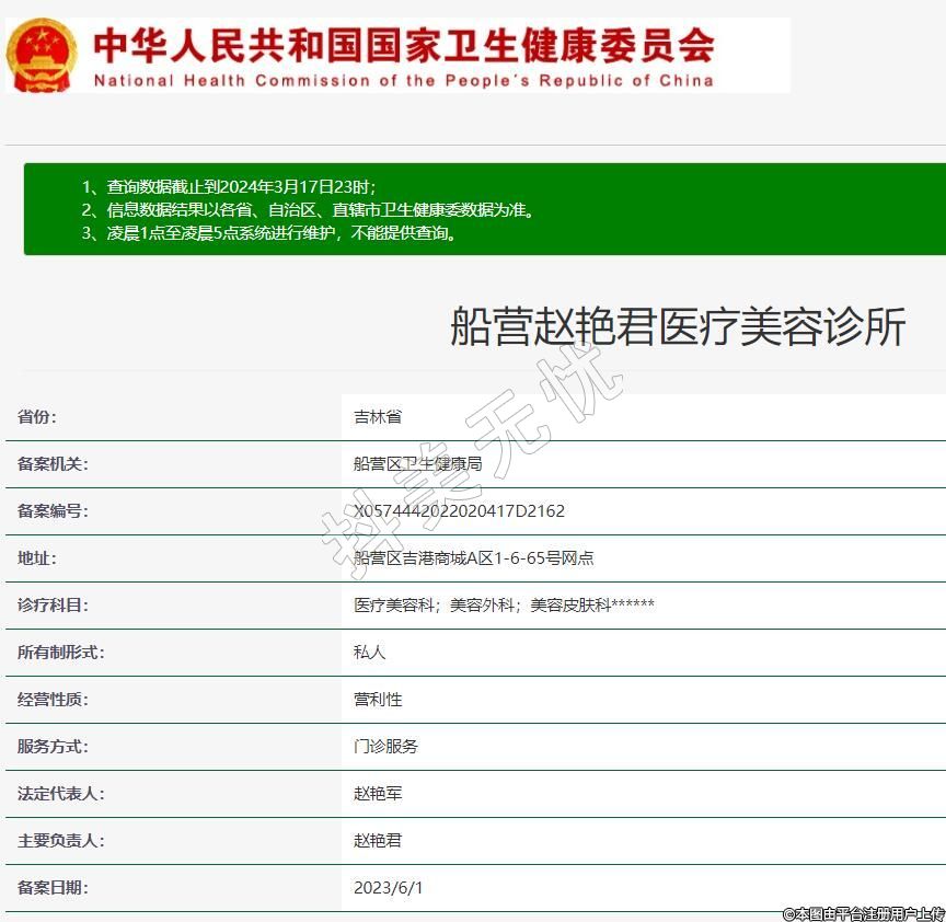 吉林趙艷君醫(yī)療美容是吉林市較大的正規(guī)醫(yī)療整形美容機(jī)構(gòu)之一。經(jīng)國家正式批準(zhǔn)建立,位于吉林市中心繁華地段——解放中路與琿春街交叉路口,臨近河南街,交通便利。以超前的意識,學(xué)習(xí)和引進(jìn)較新的美容信息、新技術(shù),特別是引進(jìn)高科技的生物基因技術(shù)、抗衰老技術(shù)及祖國傳統(tǒng)中醫(yī)藥產(chǎn)品,結(jié)合自己多年臨床經(jīng)驗(yàn)總結(jié)出“以內(nèi)養(yǎng)外、內(nèi)調(diào)外養(yǎng)”的美容方法。
