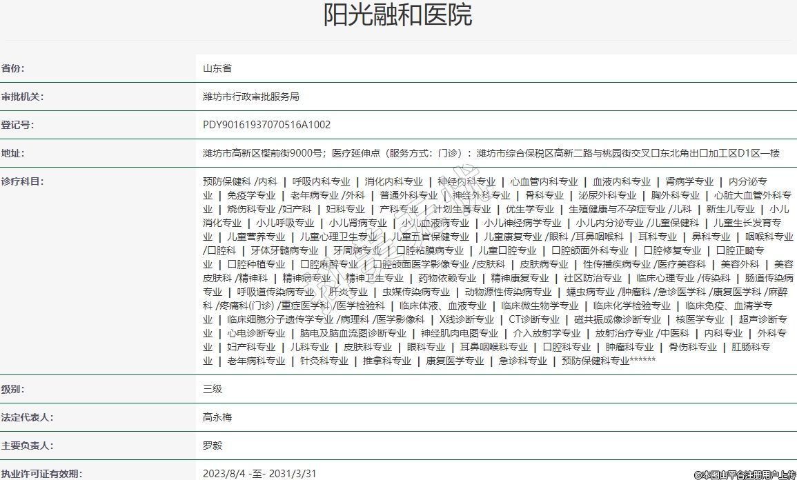 地址:濰坊市高新區(qū)櫻前街9000號;醫(yī)療延伸點(diǎn)(服務(wù)方式:門診):濰坊市綜合保稅區(qū)高新二路與桃園街交叉口東北角出口加工區(qū)D1區(qū)一樓