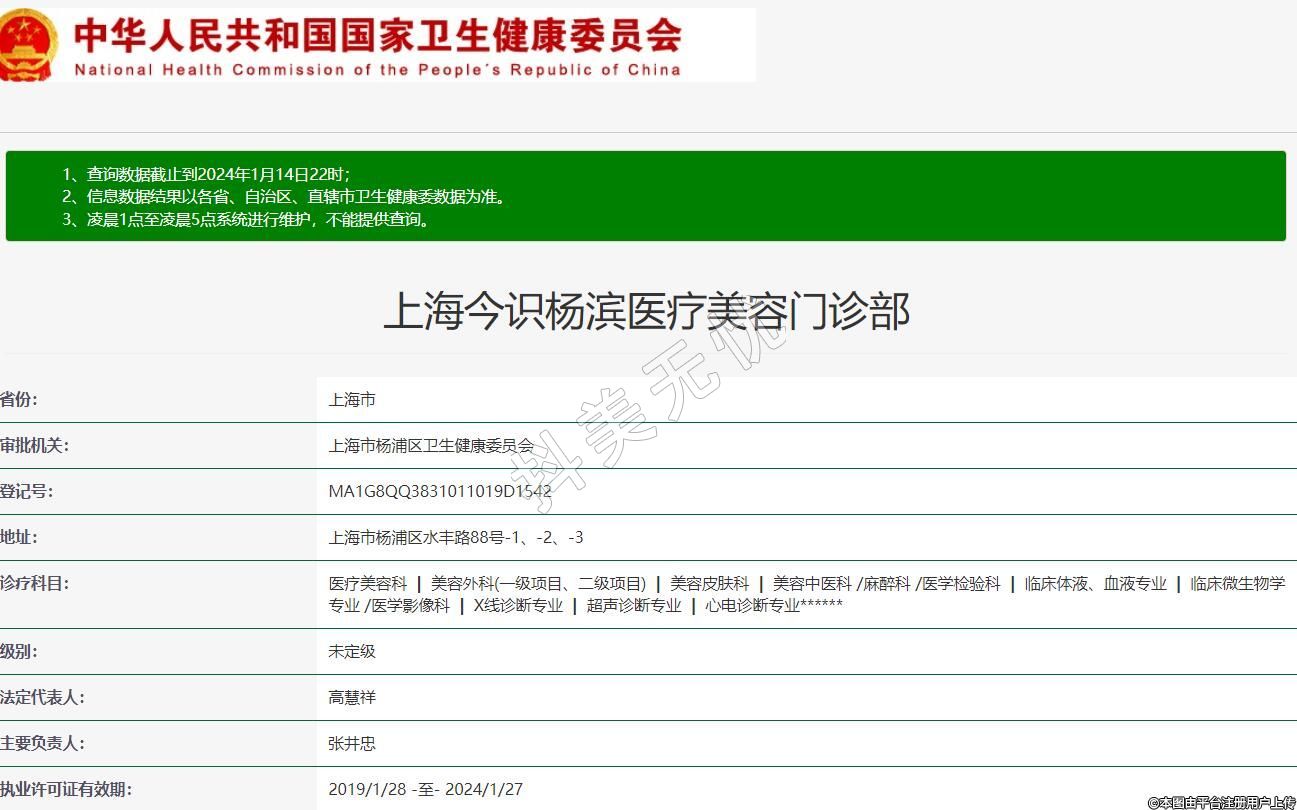上海今識楊濱醫(yī)療美容門診部