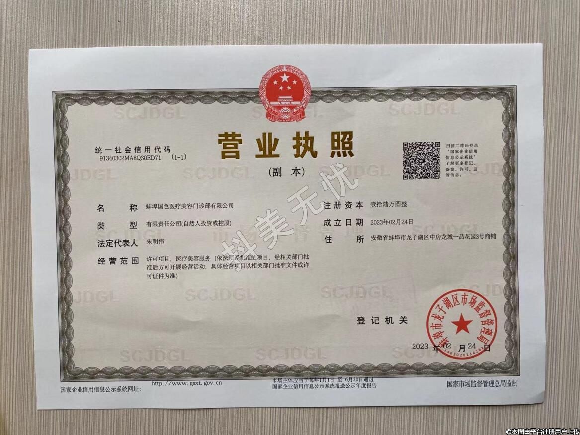 發(fā)證機關:蚌埠市龍子湖區(qū)衛(wèi)生健康委員會
