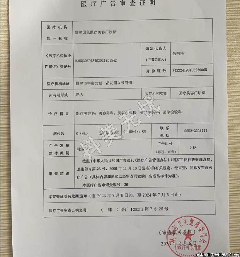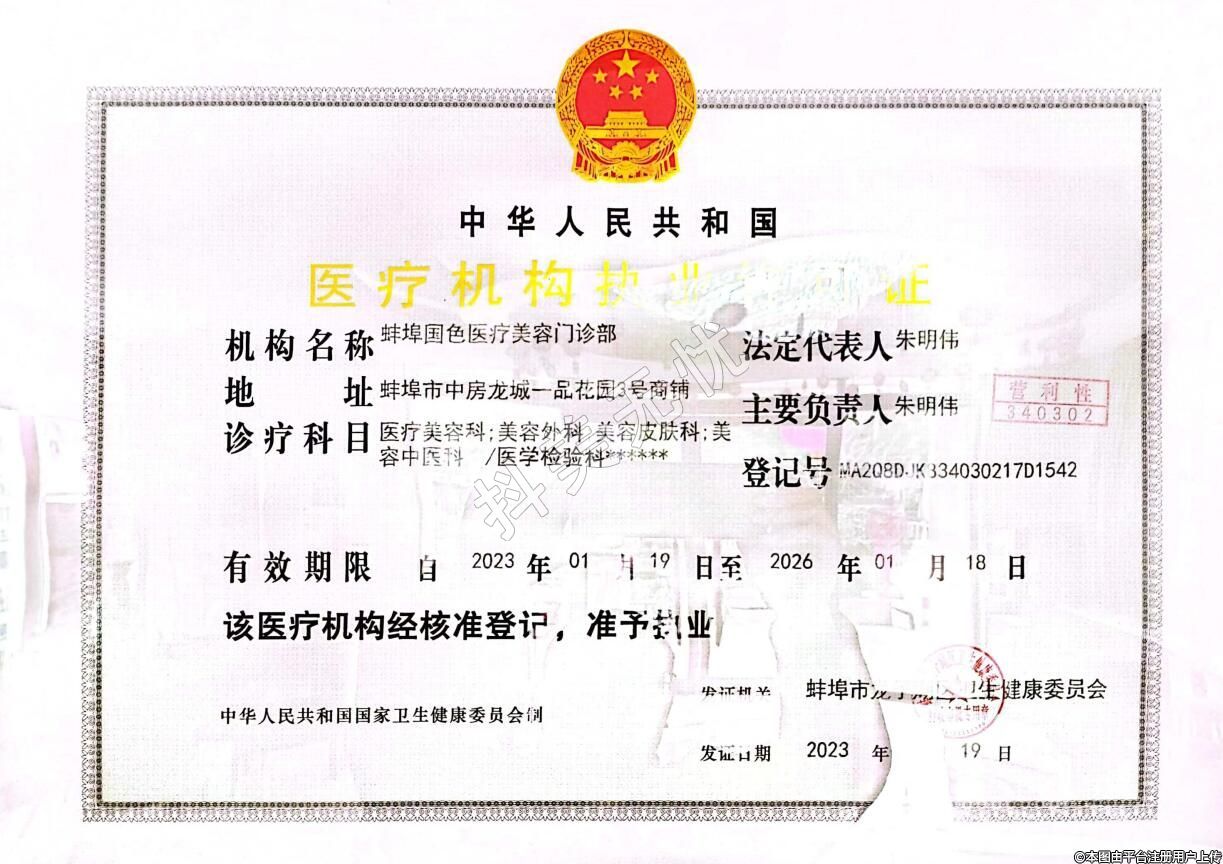 機構名稱:蚌埠國色醫(yī)療美容門診部
