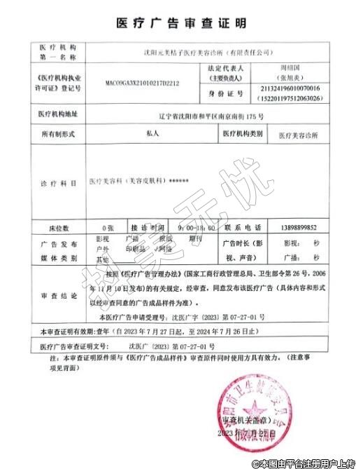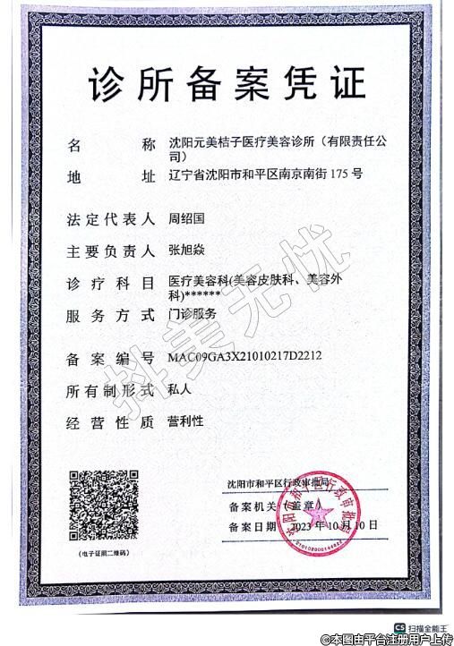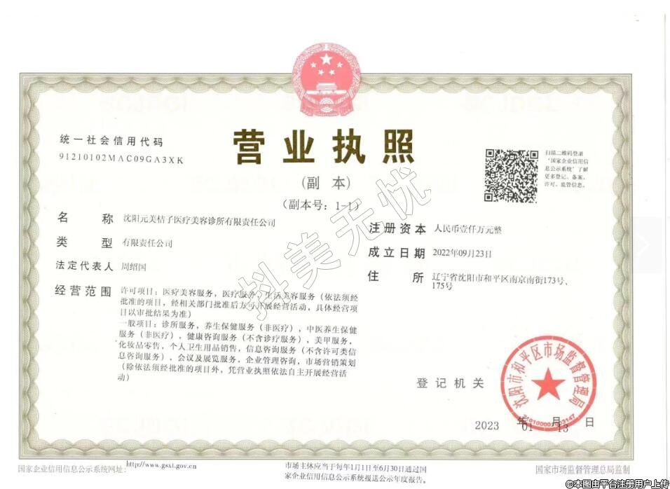 名稱:沈陽(yáng)元美桔子醫(yī)療美容診所(有限責(zé)任公稱司)