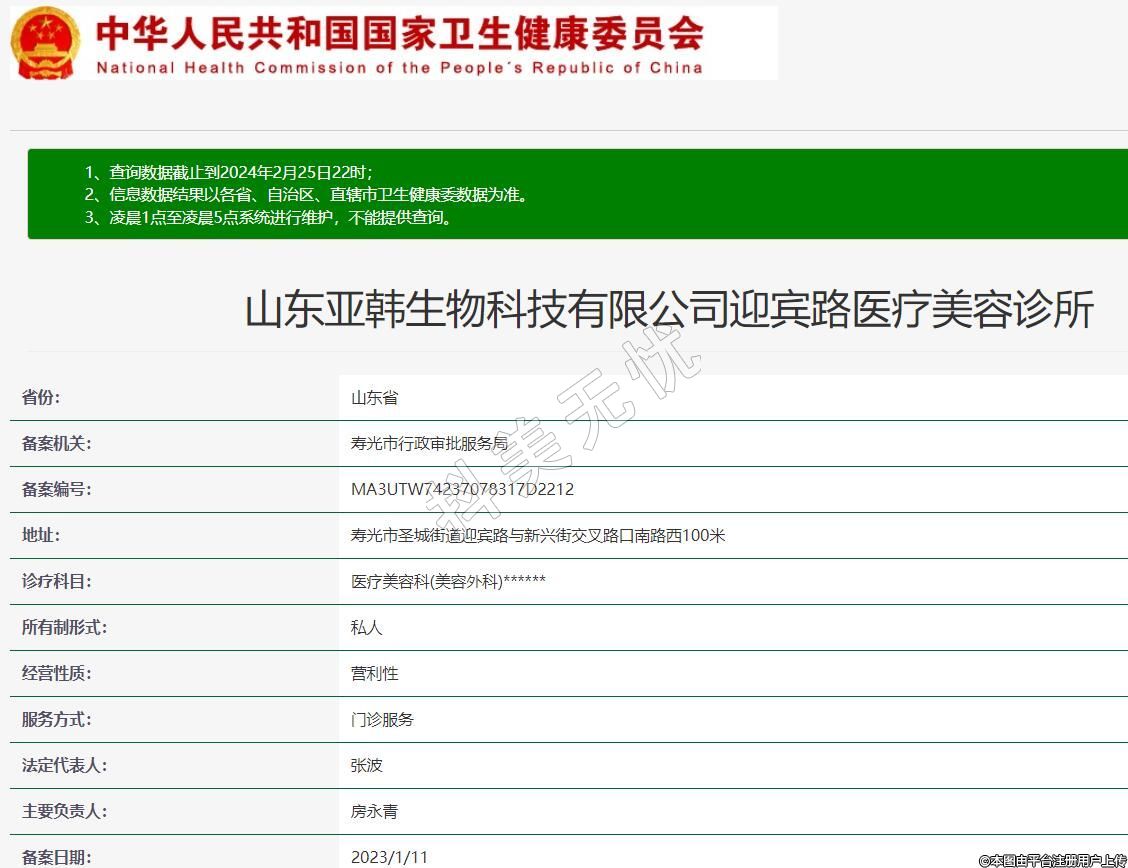 山東亞韓生物科技有限公司迎賓路醫(yī)療美容診所